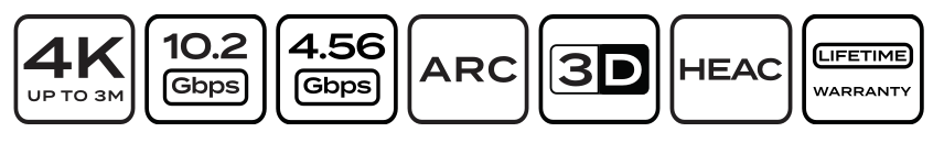 - Alta velocidad con Ethernet en longitudes de hasta 3 m (9’10») para soporte de 2160p (4K)
